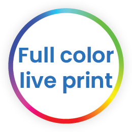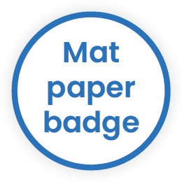 - CMYK printed and folded for double sided badge with professional inkjet technology from Epson.